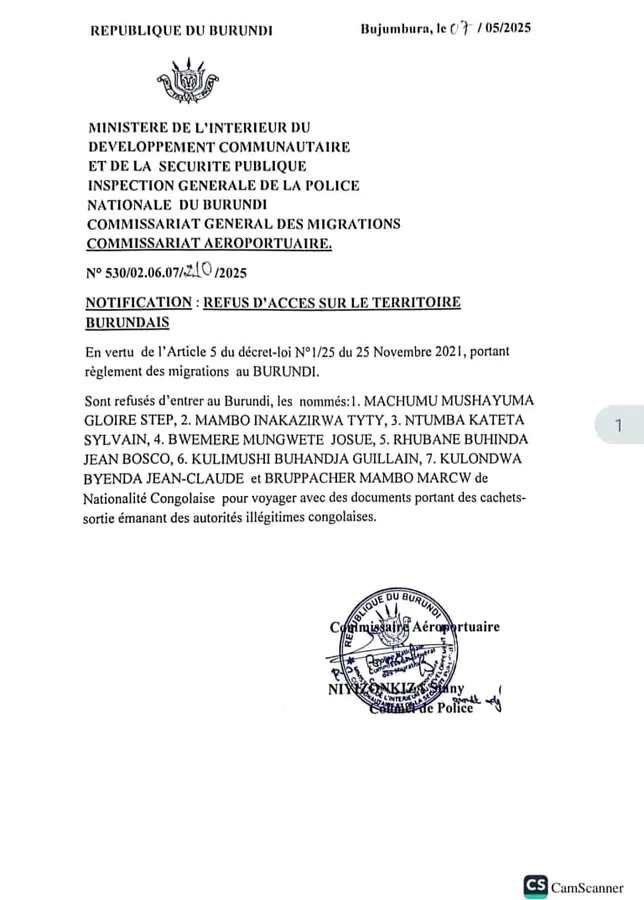 A statement issued by the Burundian authorities reveals that several Congolese have been been refused entry into Burundi for having exit stamps from the DGM AFC/M23 rebel-coalition.